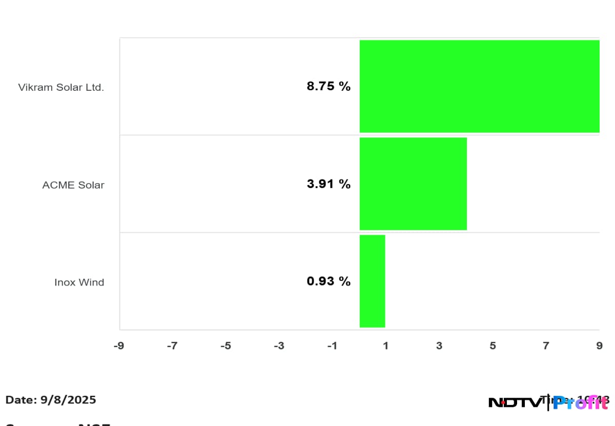 Vikram Solar Ltd., Acme Solar Holdings Ltd., and Inox Wind Energy share prices advanced.