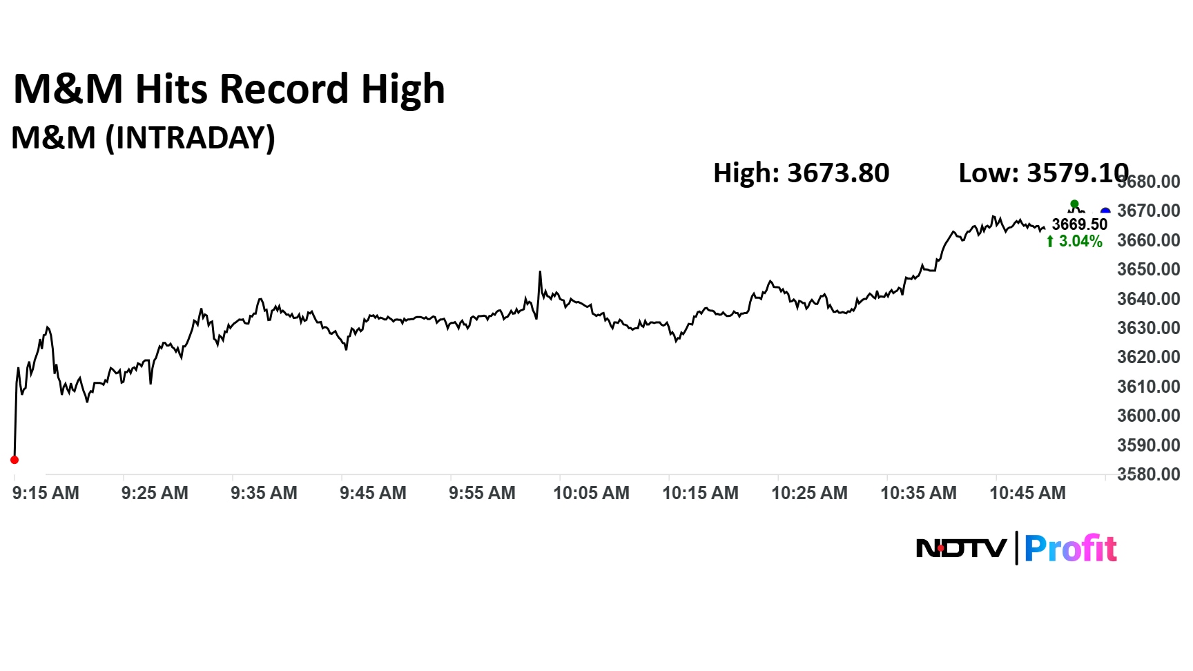 Mahindra & Mahindra Ltd. share price rose 3.16% to a record high of Rs 3,673.80 apiece.