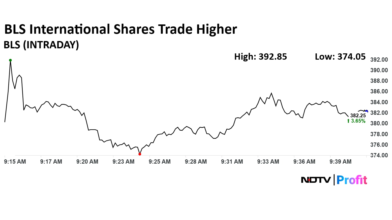 BLS International Services Ltd.'s share price rose over 6% during early trade on Tuesday after the company announced that it has received an order worth Rs 2,055 crore from Unique Identification Authority of India.
