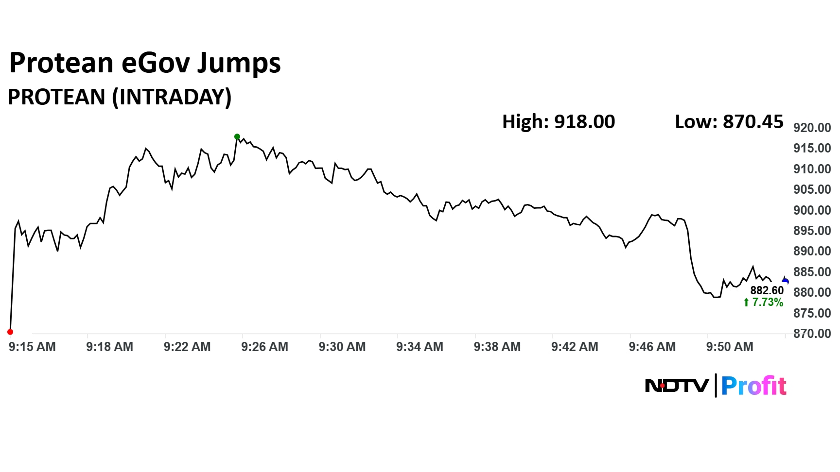 Protean eGov Technologies share price jumped 12.05% to Rs 918 apiece, the highest level since June 19.