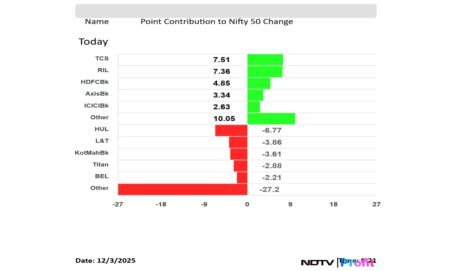 Hindustan Unilever Ltd., Larsen & Toubro Ltd., Kotak Mahindra Bank Ltd., Titan Co Ltd., Bharat Electronics Ltd. weighed on the NSE Nifty 50 index.