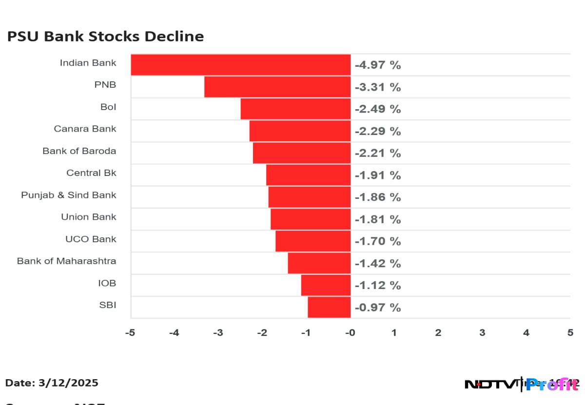 The shares of India's state-run lenders fell on Wednesday after the Finance Ministry clarified on increasing the Foreign Direct Investment (FDI) limit within the sector. The decline was led by Indian Bank Ltd. and Punjab National Bank Ltd.