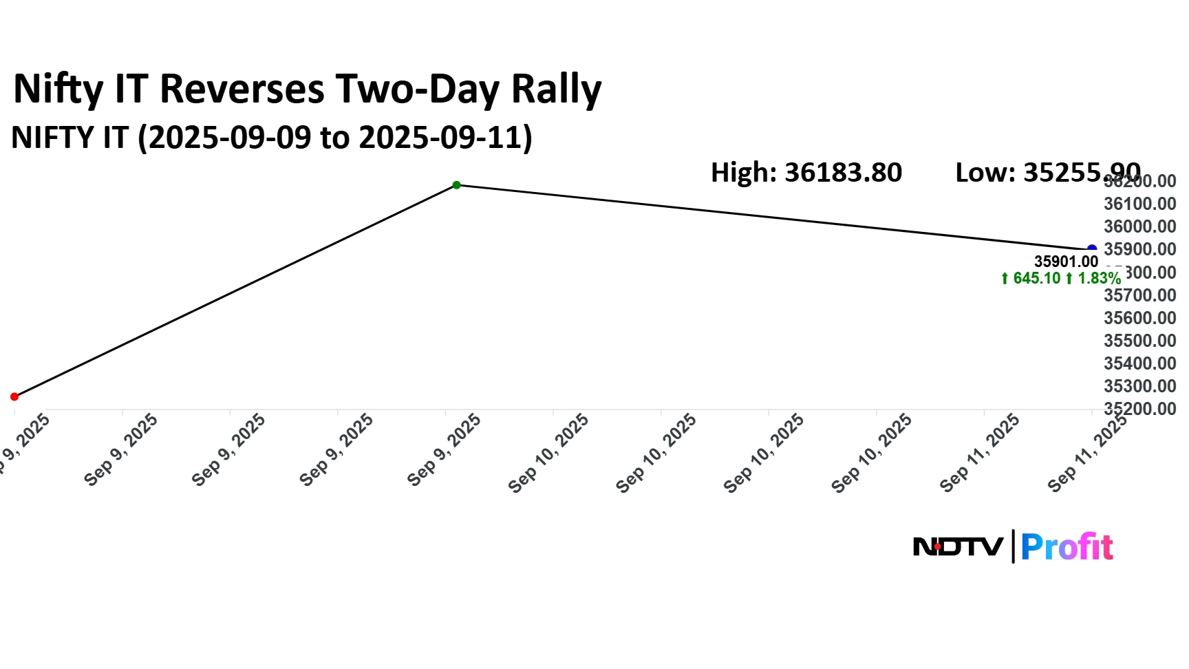 The NSE Nifty IT index reversed a two-day rally as Infosys share price weighed. The index was trading 0.77% down at 35,907 as of 10:31 a.m.