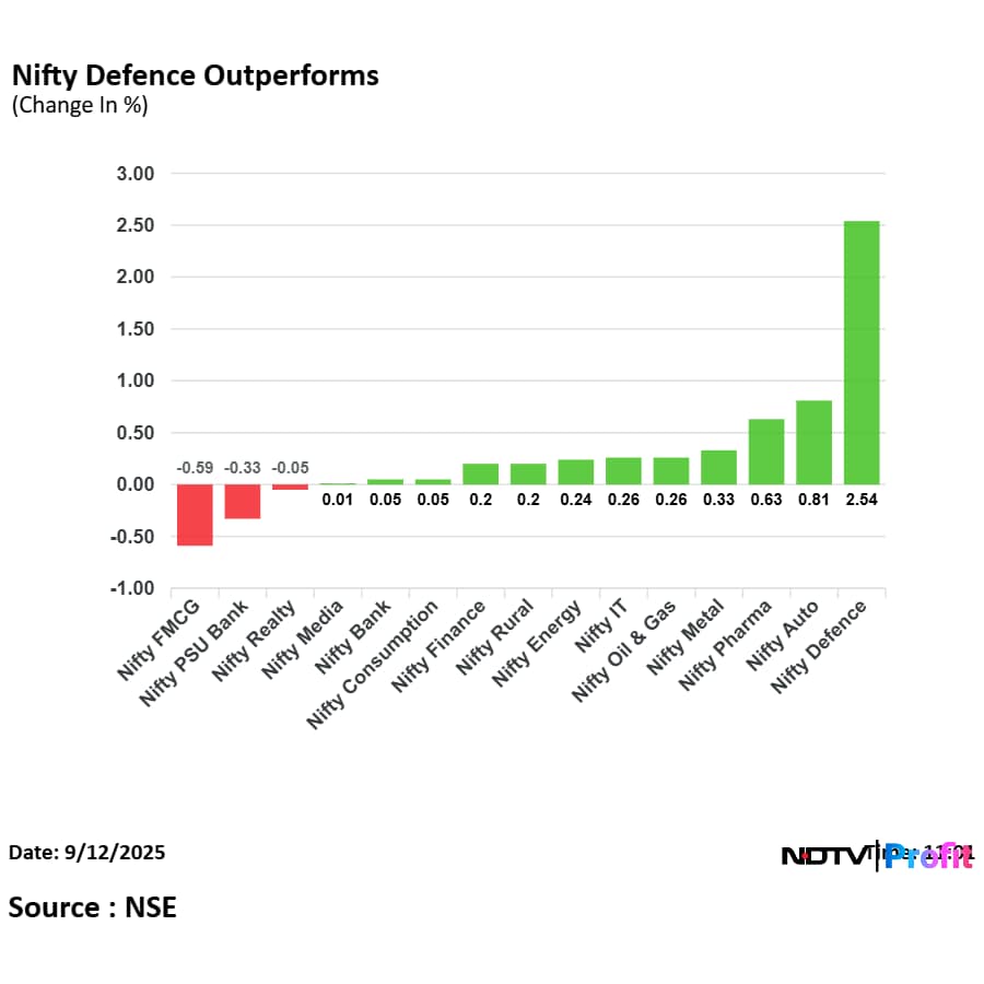 NSE Sectoral Performance: Nifty Defence Outperforms As BEL, HAL Share Prices Rise
