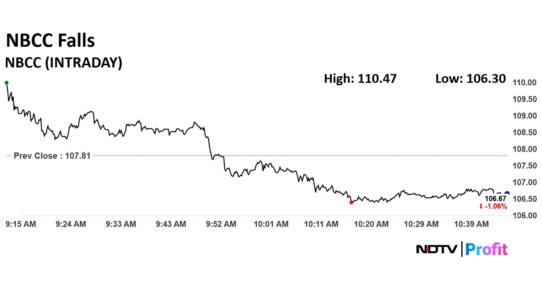 NBCC (India) share price snapped a five-day rally. The stock price declined 1.40% Rs 106.30 apiece.