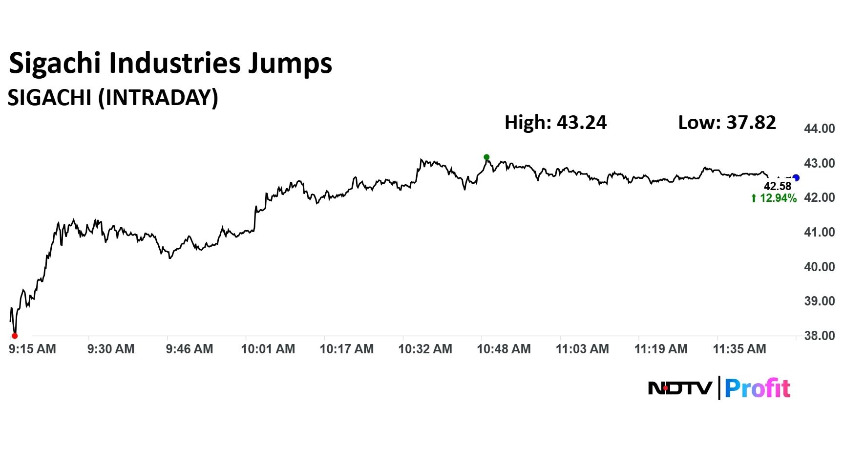 Sigachi Industries share price jumped 14.69% to Rs 43.24 apiece, the highest level since July 9.