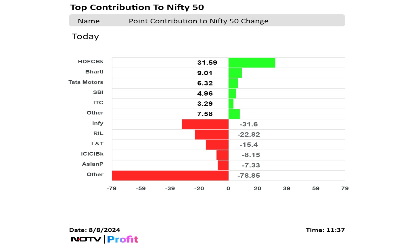 Shares of HDFC Bank Ltd., Bharti Airtel Ltd., Tata Motors Ltd., State Bank of India Ltd., and ITC Ltd. contributed to gains in the Nifty.