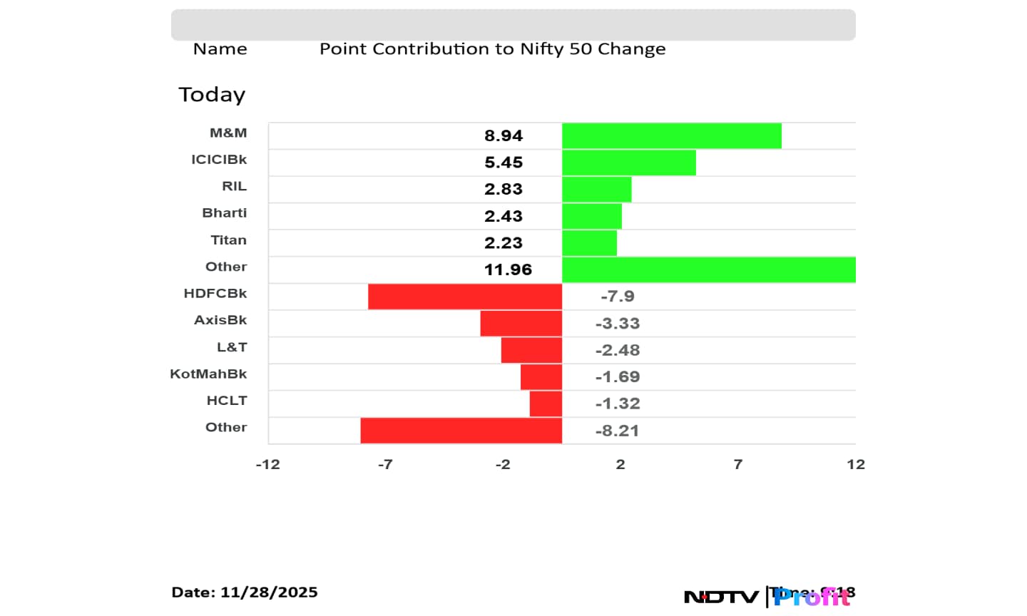 Nifty top gainers include Mahindra & Mahindra Ltd. and Sun Pharma