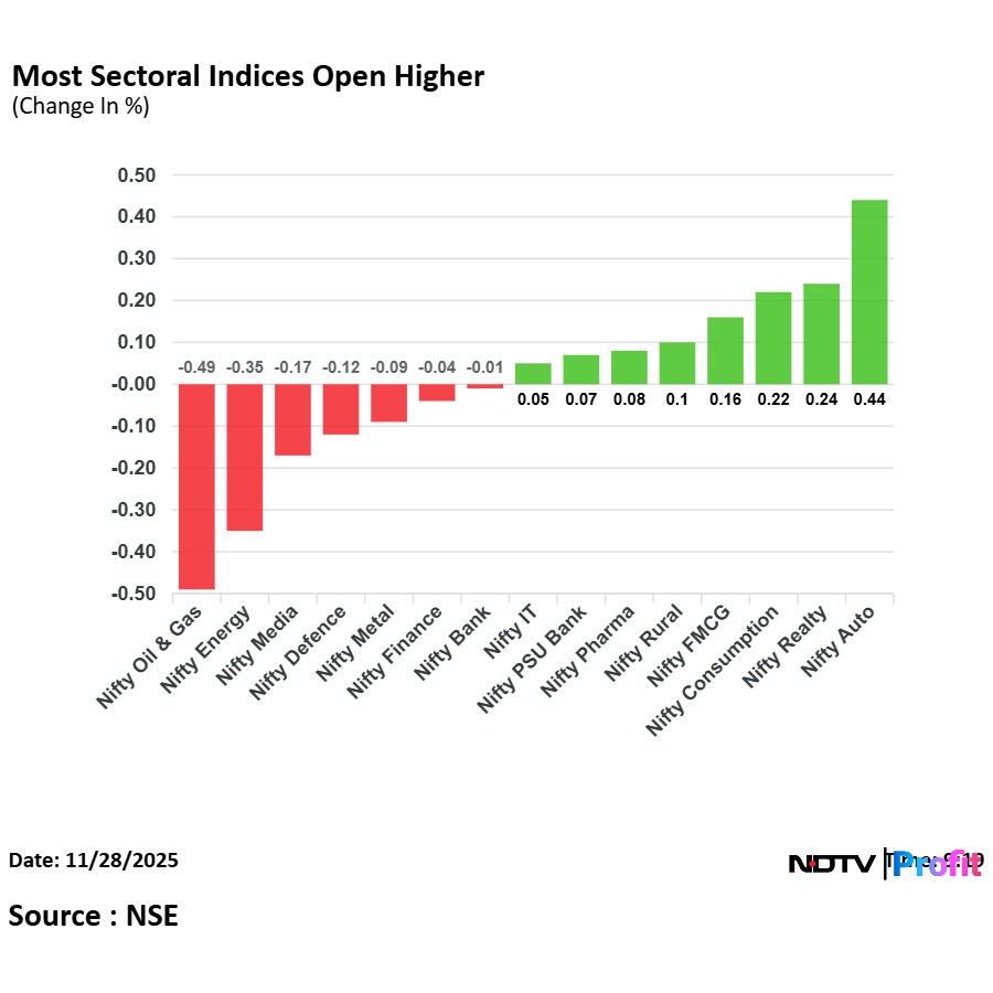On National Stock Exchange, eight sectoral indices advanced, five declined, and two remained flat out of 15.