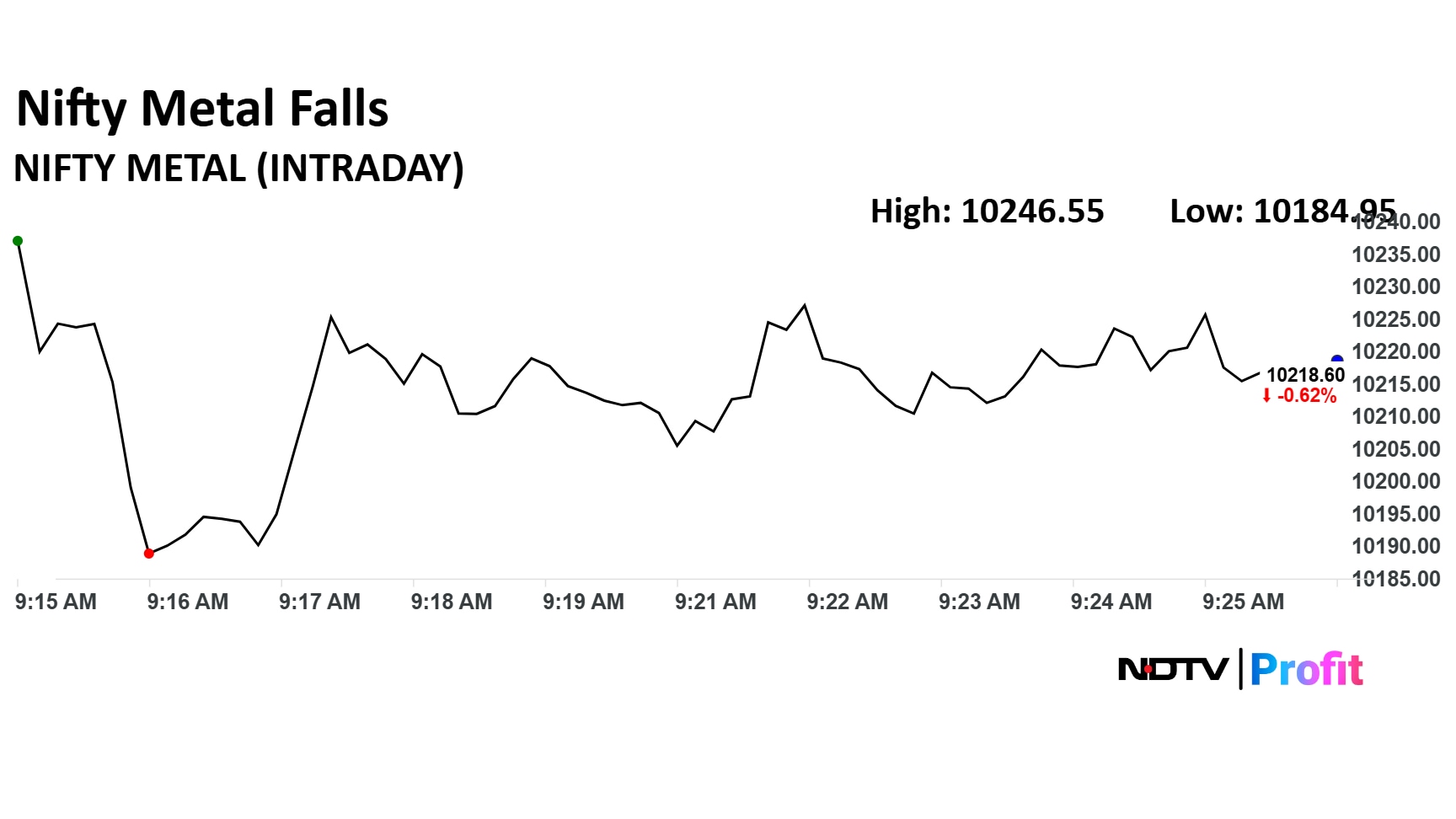The NSE Nifty Metal index fell 0.94% to 10,184.95 as JSW Steel Ltd. and Tata Steel Ltd. shares weighed.
