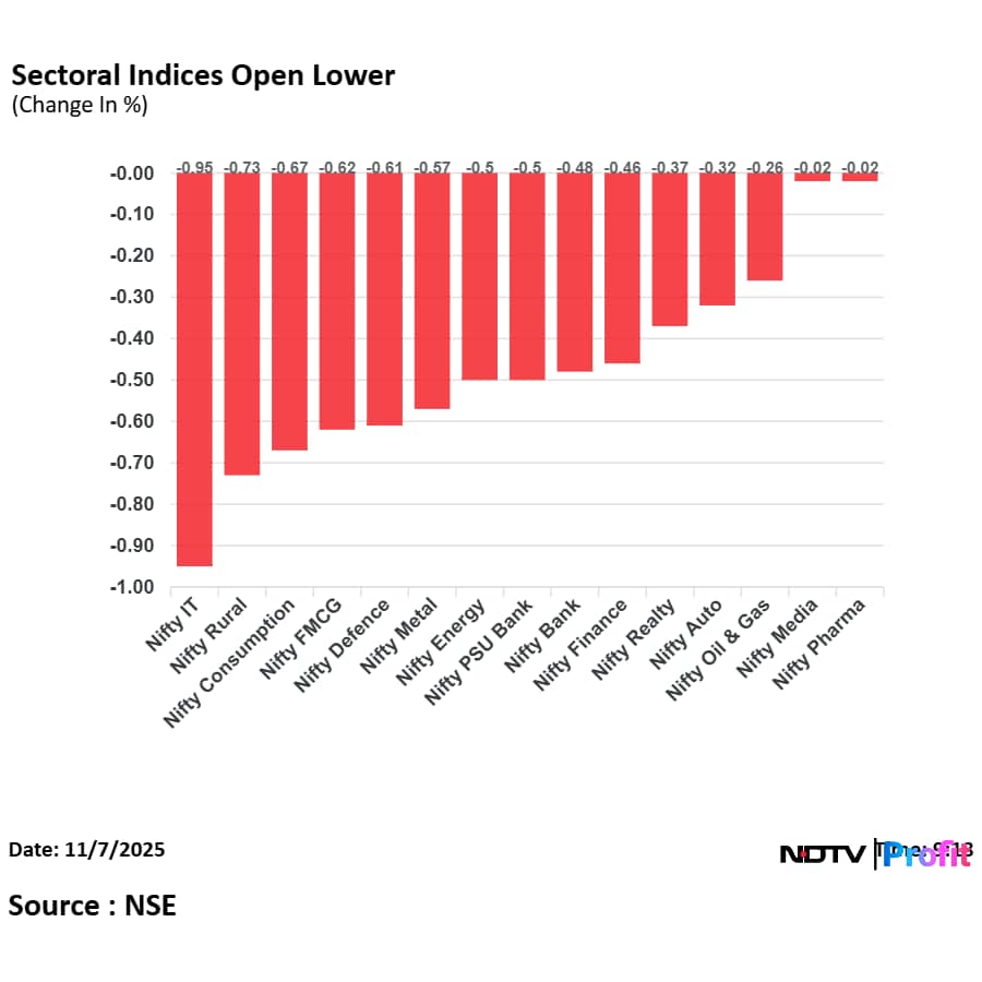The GIFT Nifty was trading 0.11% or 28.50 points lower at 25,511 as of 6:56 a.m., which implied a slight lower open for the benchmark index.