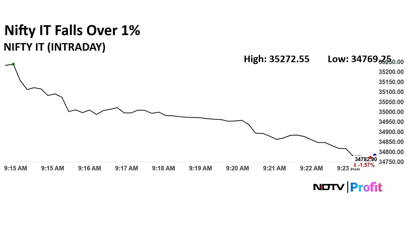 The NSE Nifty IT index fell 1.67% to 34,769.25. Coforge Ltd., LTIMindtree Ltd., and Persistent Systems Ltd. shares declined the most.