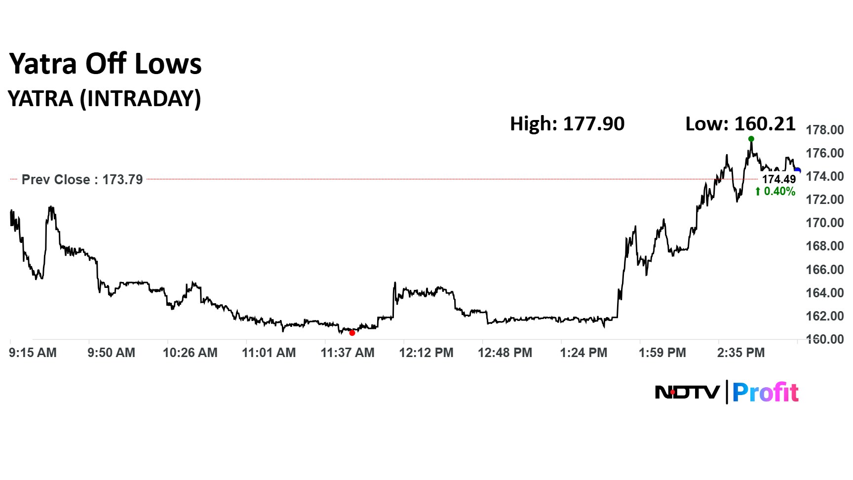 Yatra Online share price recovered after declining nearly 8%. The share price was trading 0.47% higher at Rs 174.6 apiece as of 3:12 p.m.