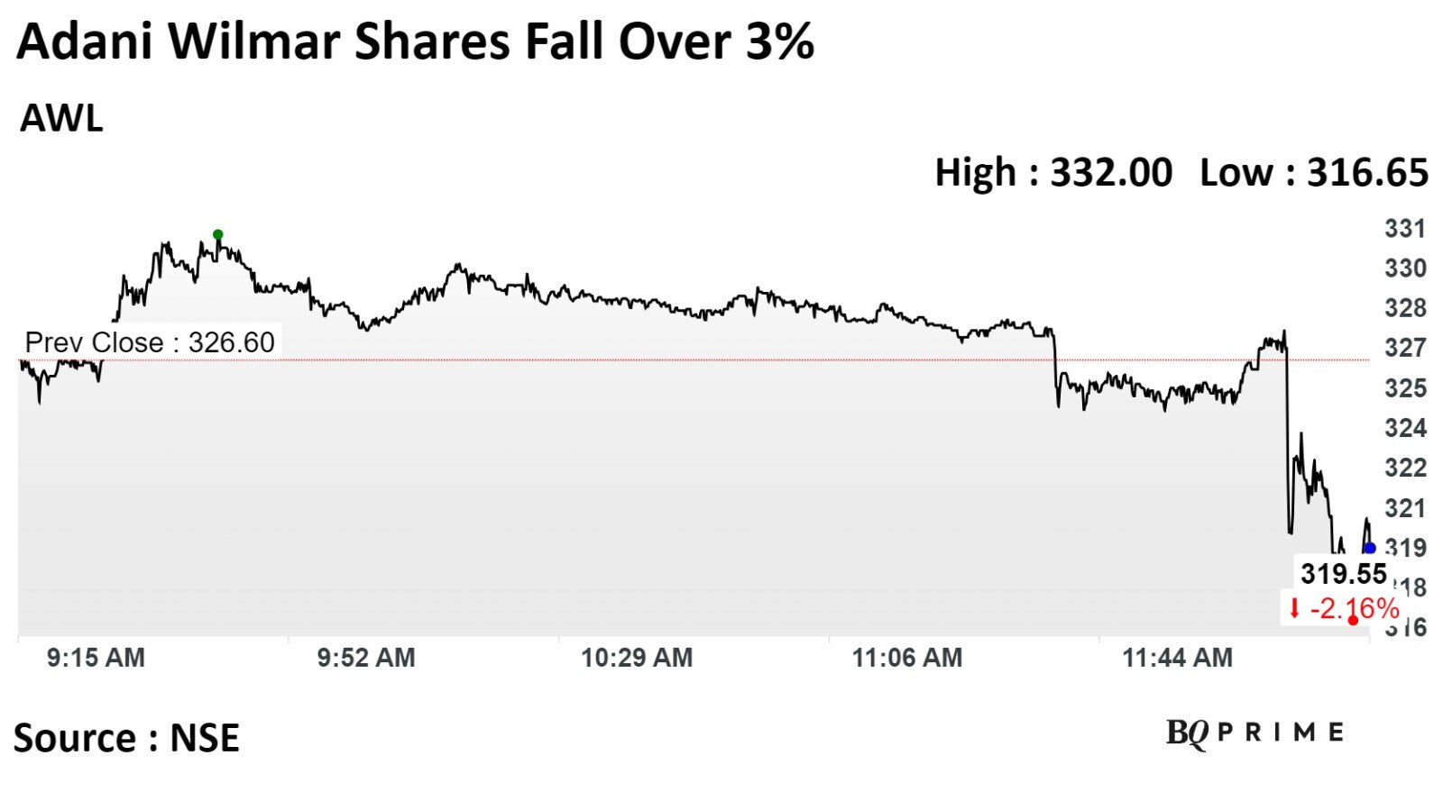 The scrip fell as much as 2.07% to Rs 895.45 apiece. It pared losses to trade 0.25% lower at Rs 912.19 apiece, as of 10:27 a.m. This compares to a 0.14% decline in the NSE Nifty 50 index.
