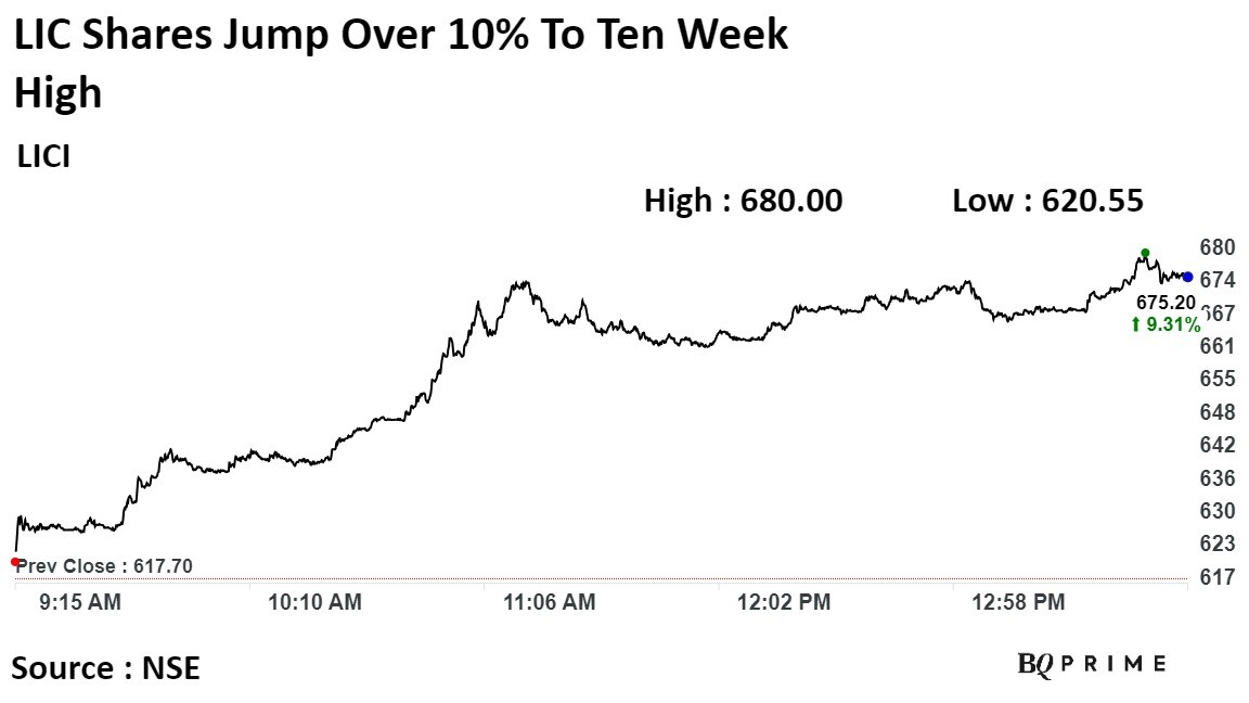 The scrip rose as much as 10.09% to Rs 6,80.00 apiece, the highest level since Sep 11. It was trading 9.32% higher at Rs 675.30 apiece, as of 1:54 p.m. This compares to 0.09% decline in the NSE Nifty 50 Index.