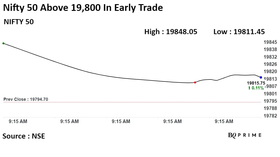 NSE Nifty 50 Index was above the 19,800 mark, whereas Sensex was hovering around the 66,000 level.