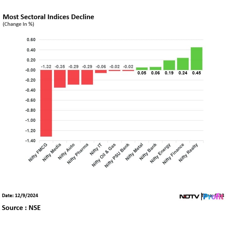 • Most sectoral indices fell with Nifty FMCG falling the most