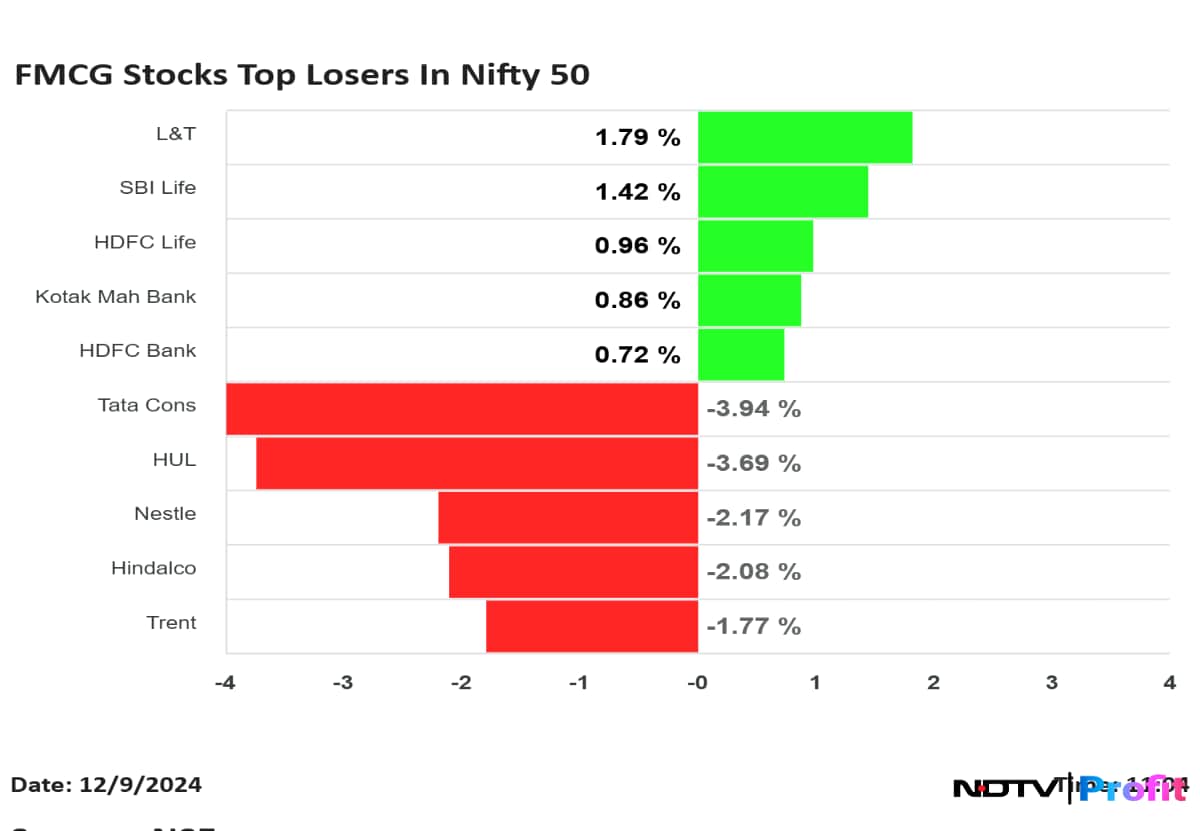 • Tata Consumer and HUL fell the most