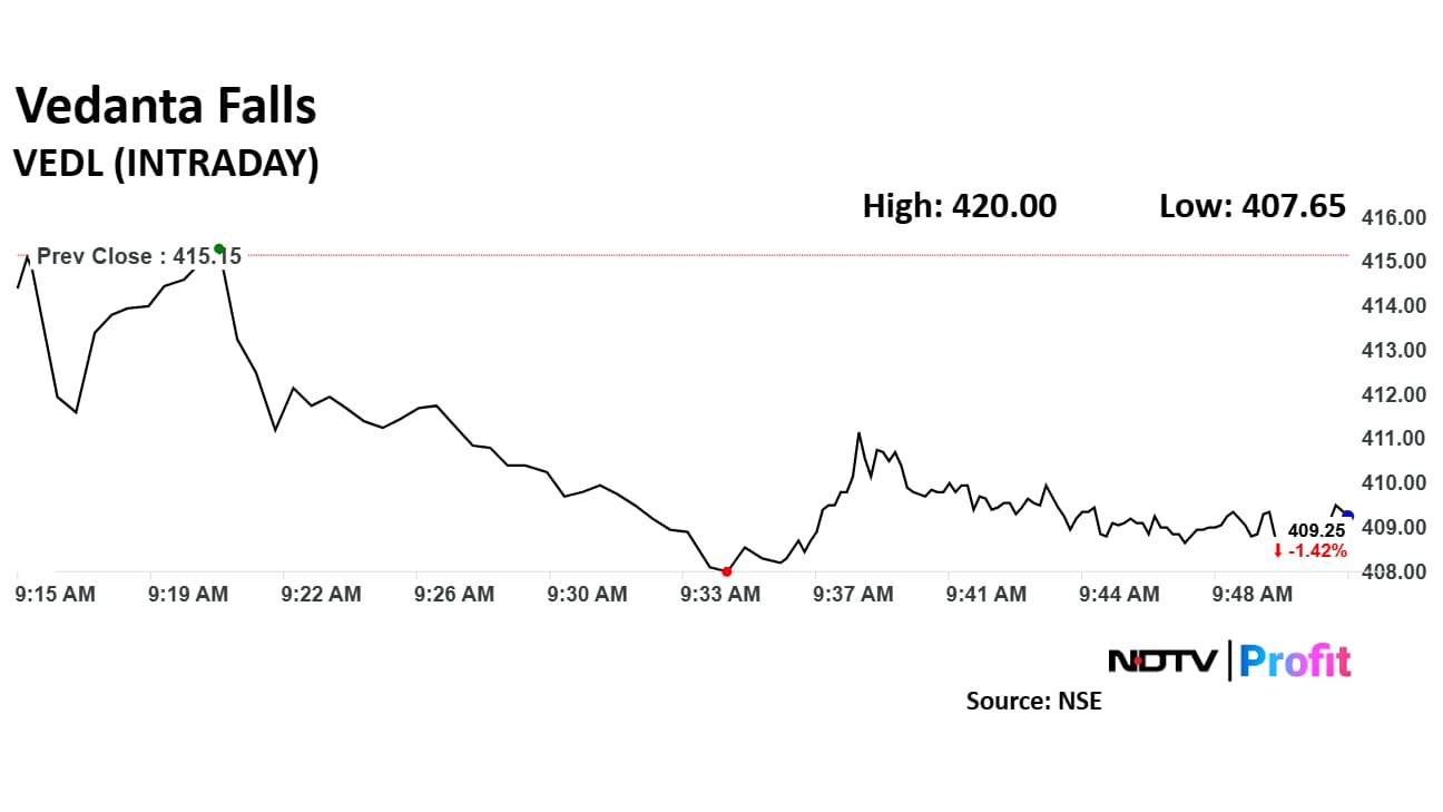 The NSE Nifty 50 and BSE Sensex declined after a muted open tracking losses in Reliance Industries Ltd., and State Bank of India. As of 9:18 a.m., the Nifty 50 was 39.50 points or 0.17% down at 22,920.00, and the Sensex was 107.08 points or 0.14% down at 75,889.78. (Source: Vijay Sartape/NDTV Profit)