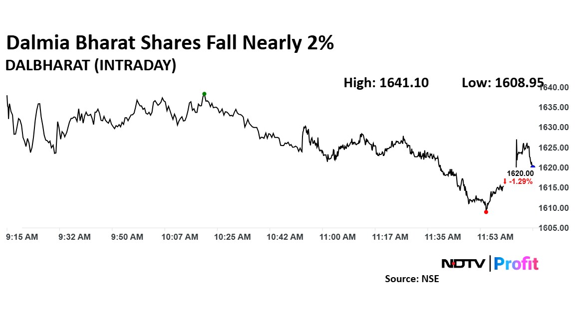 Dalmia Bharat shares fall nearly 2% on Thursday extending its decline. This comes as the company expects Tamil Nadu Limestone Tax to have an impact of Rs 130 crore per year.