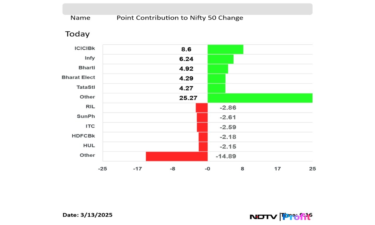 • ICICI Bank, SBI, Bharat Electronics, Sun Pharma and Power Grid Corp. emerged as the top gainers for the day.