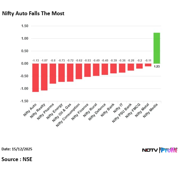 Most sectoral indices fell, led by Nifty Auto and Nifty Pharma.