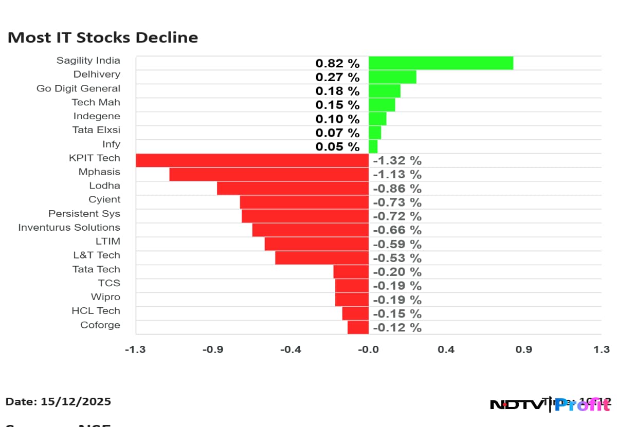 As the markets trade lower most IT stocks were trading in the red with KPIT Technologies, Mphasis and Cyient leading the decline.