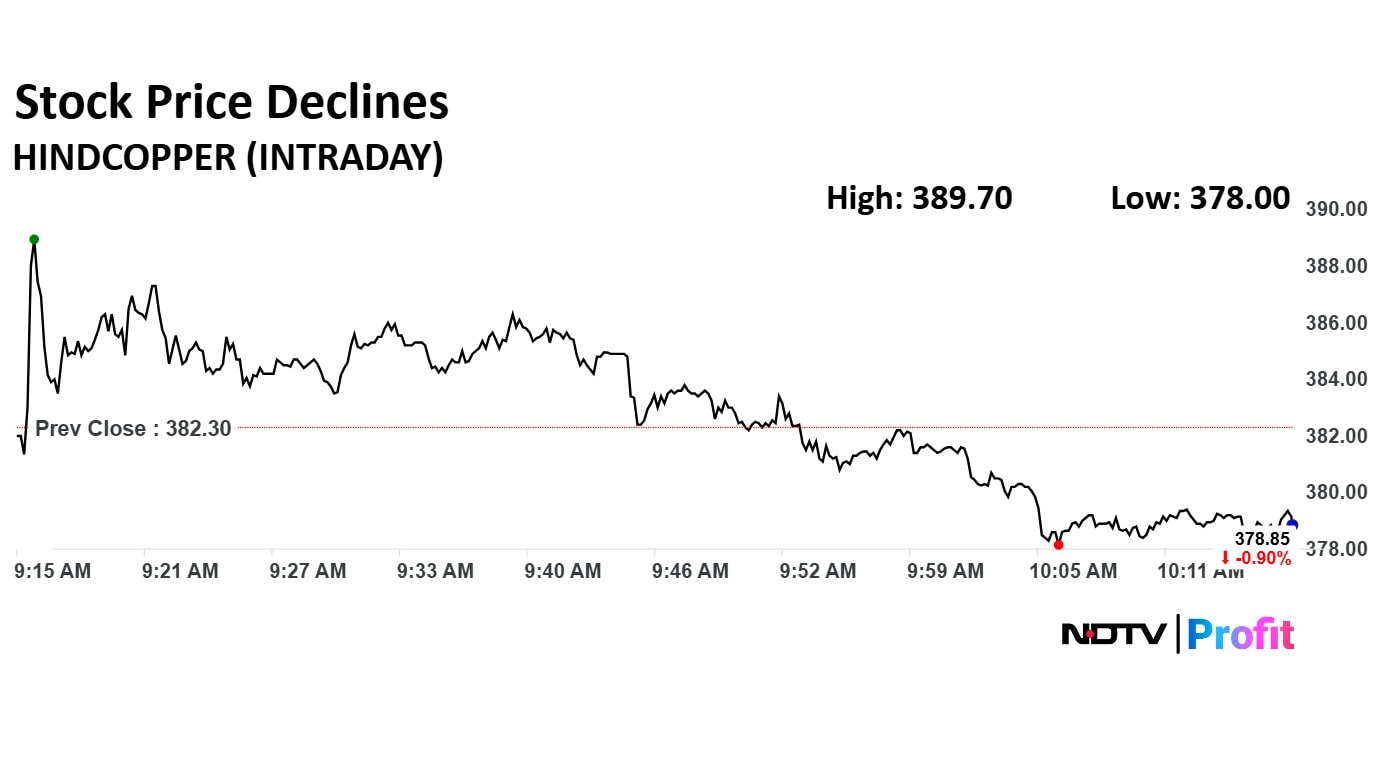 Hindustan Copper Ltd.'s stock opened lower on Monday but later gained nearly 2% before giving up gains to trade 1.12% lower on the exchanges.