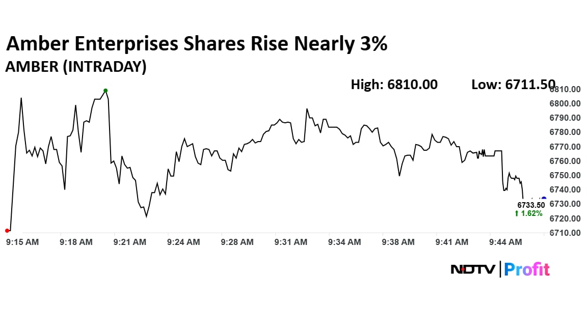The shares of Amber Enterprises rose nearly 3% on Monday after Kotak Securities upgraded it to 'Buy' with a target price of Rs 8,100. However, Motilal Oswal cut its target price to Rs 8,000, while maintaining its buy rating.