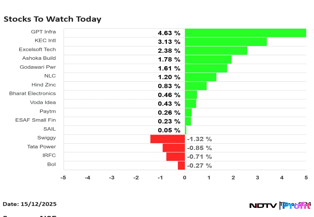 GPT Infra shares rose over 5% while Swiggy fell over 1% few minutes after the open.