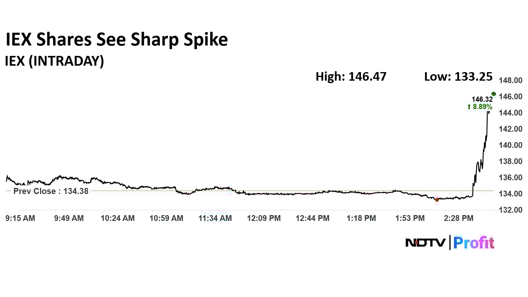 Shares of IEX are trading 8.28% higher at Rs 145.5 apiece in late trade on Tuesday.