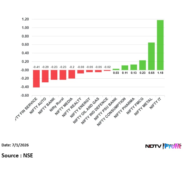 Nifty Bank fell 0.33%, Nifty IT was up 1.35%.