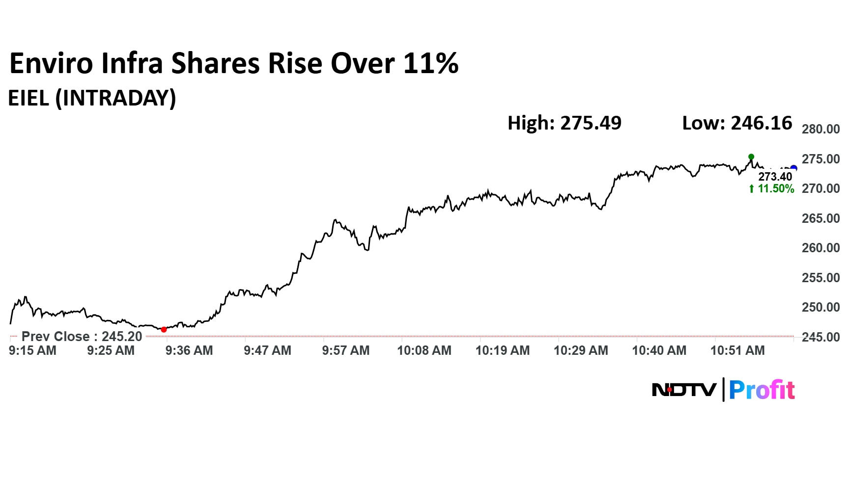 Enviro Infra Engineers Ltd.'s shares surged by 11% on Friday, reaching a five-month high. This spike follows the company's announcement of a Rs 400-crore order win.
