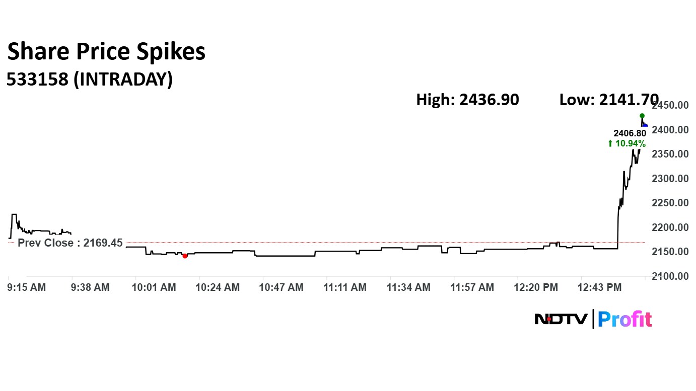 Steel Strips Wheels Ltd.'s share price gained after the company reported a 12.4% year-on-year increase in net turnover for October, reaching Rs 416 crore. The company also posted a 12% growth by value and a 2% rise by volume during the month.
