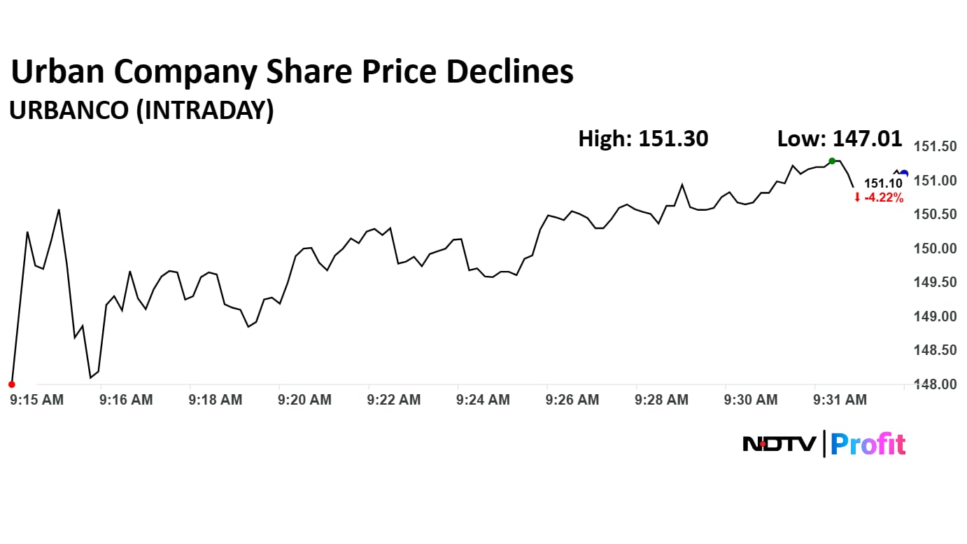 Urban Company shares price declined on nearly 7% on Monday.