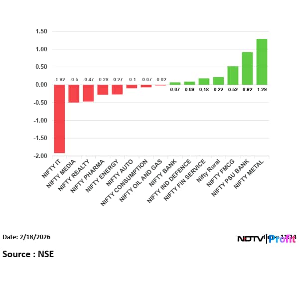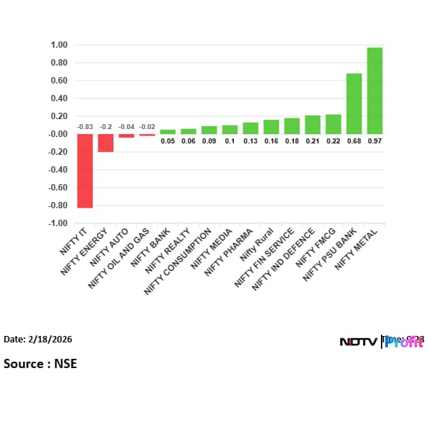 Eight out of 15 sectoral gauges traded lower, led by the NSE Nifty IT Index's 1.9% fall. On the flipside, the NSE Nifty Metal Index was the top sectoral gainer, up 1.3%.