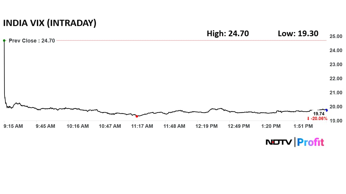 The India Volatility Index or VIX of the NSE is down 20% amid the broad-based rally.