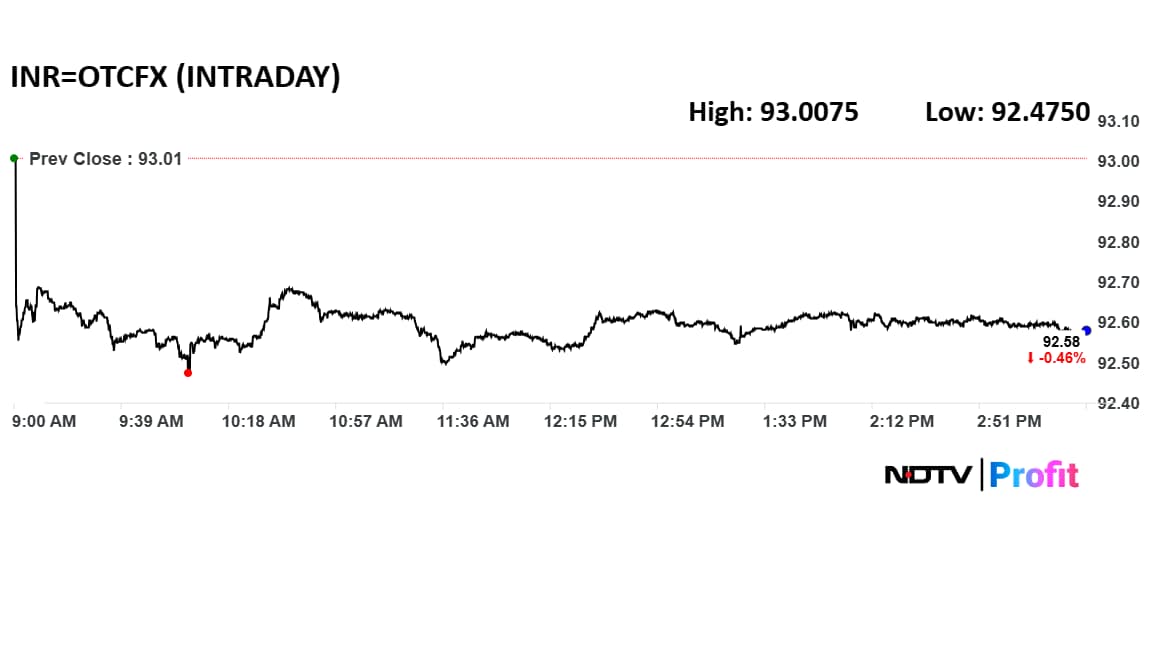 The rupee appreciated 0.45% to close 42 paise higher at 92.58 against the dollar amid broader strength in Asia.
