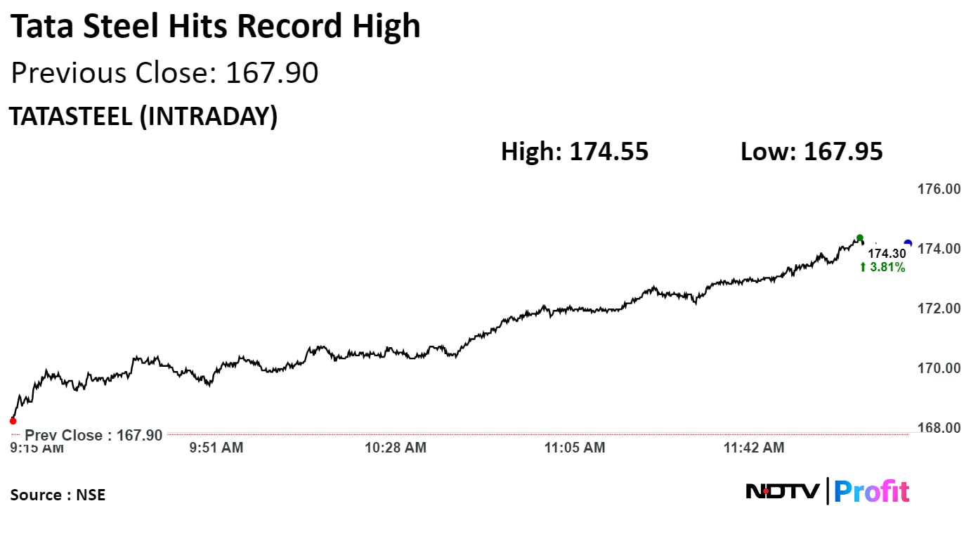 Tata Steel Ltd. rose to the highest level since listing Tuesday after the company signed a pact with National Grid for Port Talbot. National Grid will build new electrical infrastructure.