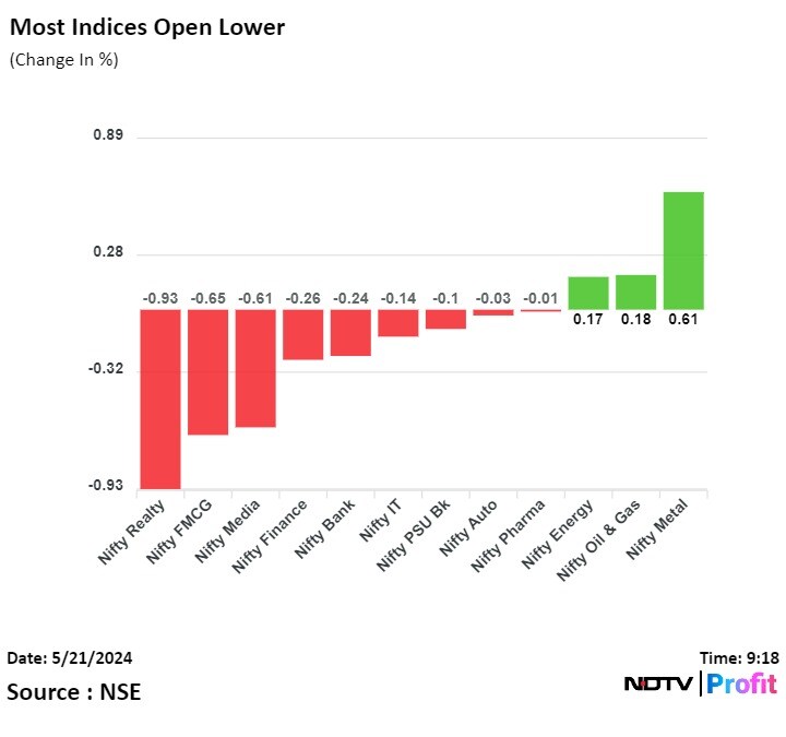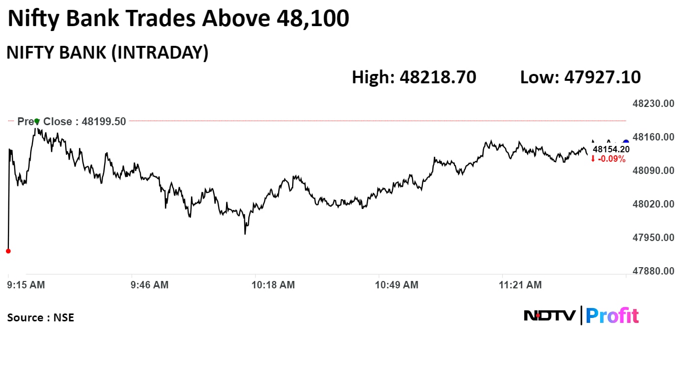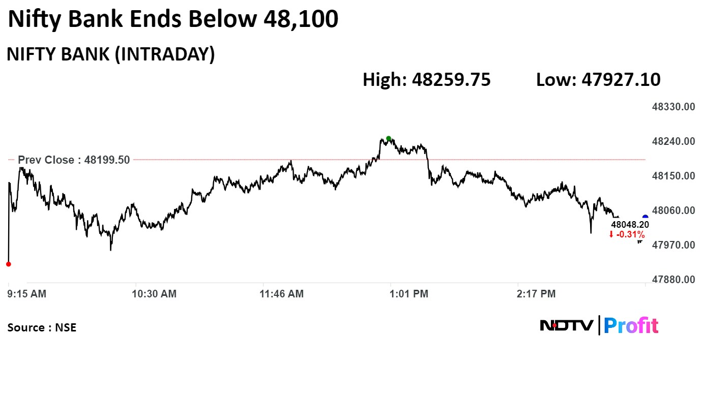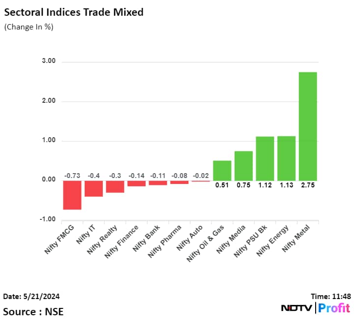 On NSE, six sectors advanced, and six declined out of 12. The NSE Nifty Bank was the top loser, and the NSE Nifty Metal was the top performing sector.