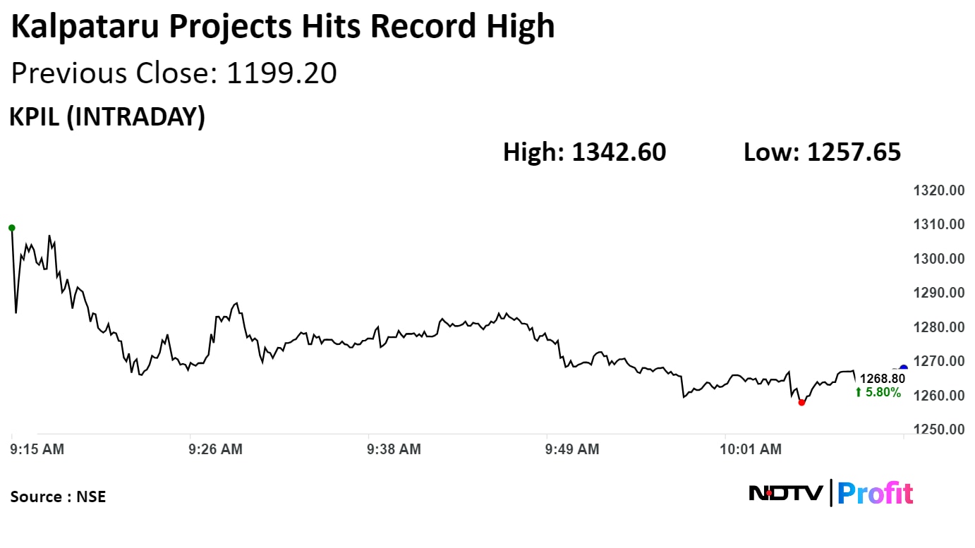 Shares of Rail Vikas Nigam surged over 15% to the highest level since the company's listing on the exchanges after it secured an order worth Rs 148 crore.