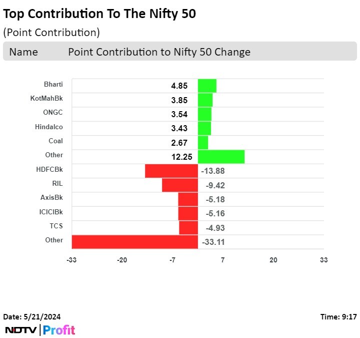 ICICI Bank Ltd., HDFC Bank Ltd., Infosys Ltd., Tata Consultancy Services Ltd., and ITC Ltd. weighed on the benchmark.