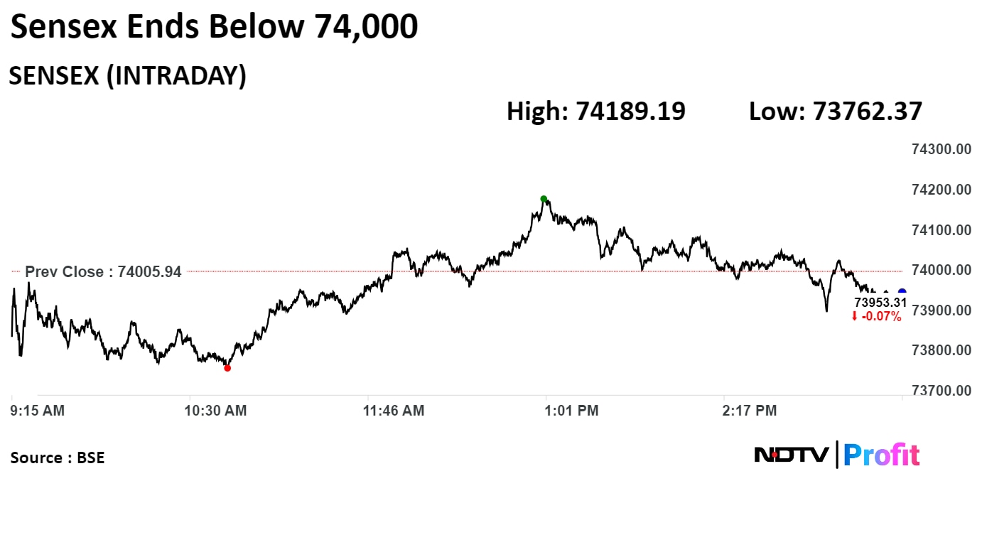 The NSE Nifty 50 settled 27.05 or 0.12% higher at 22,529.05, and the S&P BSE Sensex ended 52.62 points or 0.071% lower at 73,953.31.