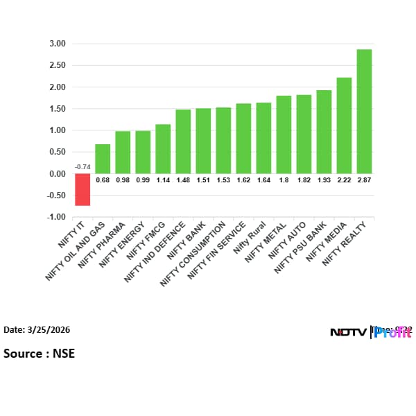 Nifty Realty was the top gainer, rising 2.9%.