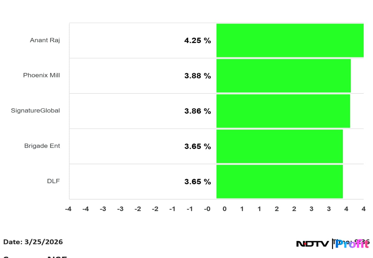 Anant Raj led the gains in the index, rising 4.25%. Phoenix Mills gained 3.88% and Signatureglobal rose 3.86%.
