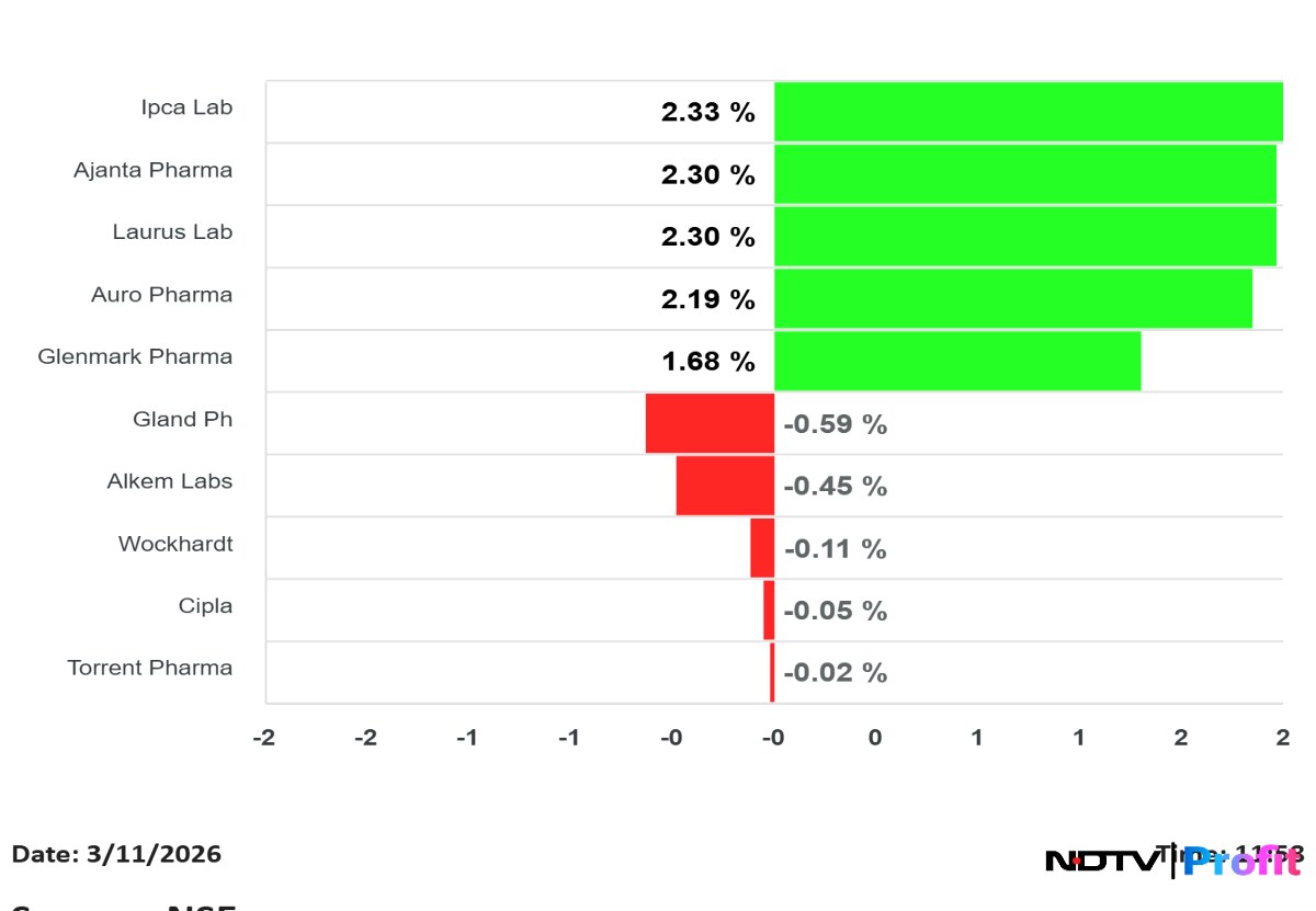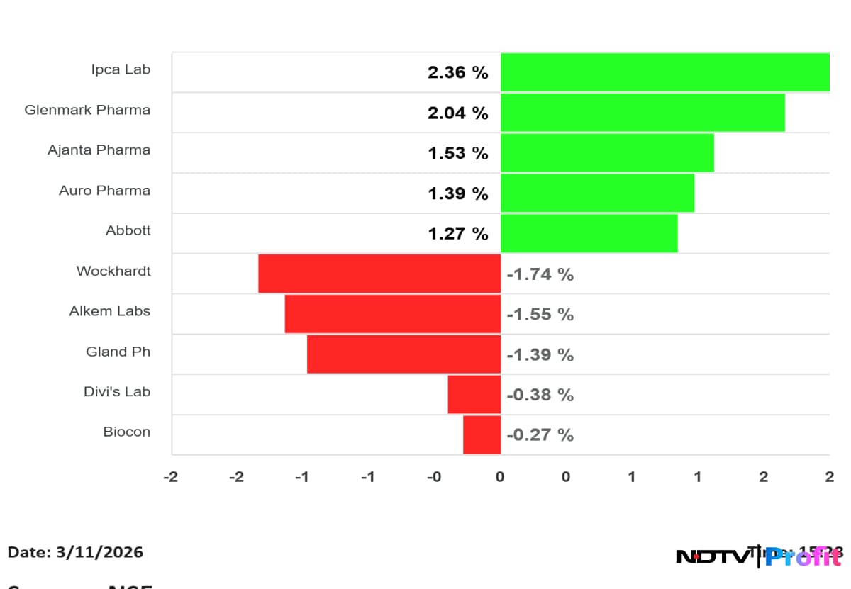Nifty Pharma remains a top sectoral performer, led by strong gains in Ipca Lab and Glenmark Pharma.