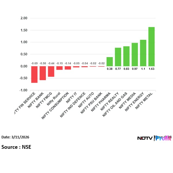 Crude oil prices moved higher during the session, reversing part of the earlier decline seen this week. Brent crude traded around $92.32 per barrel, up $4.52 or 5.15%, while US West Texas Intermediate crude was near $88.42 per barrel, up $4.97 or 5.96%. Oil markets have remained volatile since the escalation of the Iran war disrupted energy shipments through the Strait of Hormuz, a critical route for global oil trade.