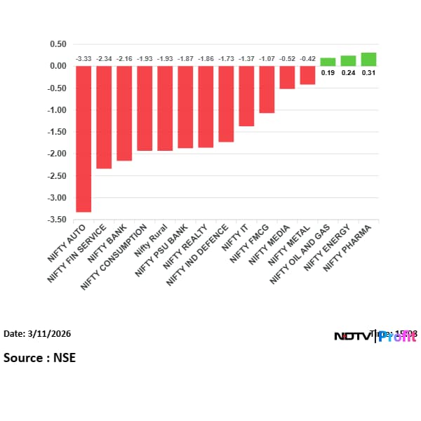 The decline in benchmark indices erased nearly Rs 3.2 lakh crore in market capitalisation among companies in the Nifty 50 index during the session. The losses marked a resumption of the recent sell-off that has pushed both the Nifty and the Sensex into correction territory after falling more than 10% from their record highs earlier this week.