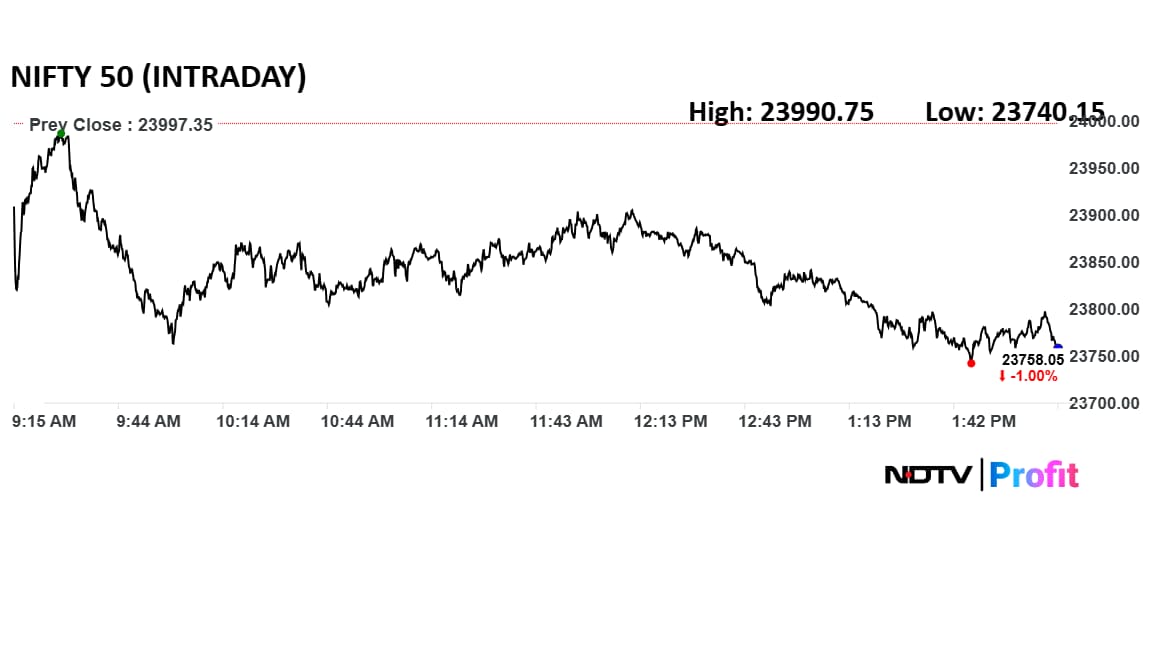 Nifty Financial Services, Oil and Gas, and Bank indices also traded lower.