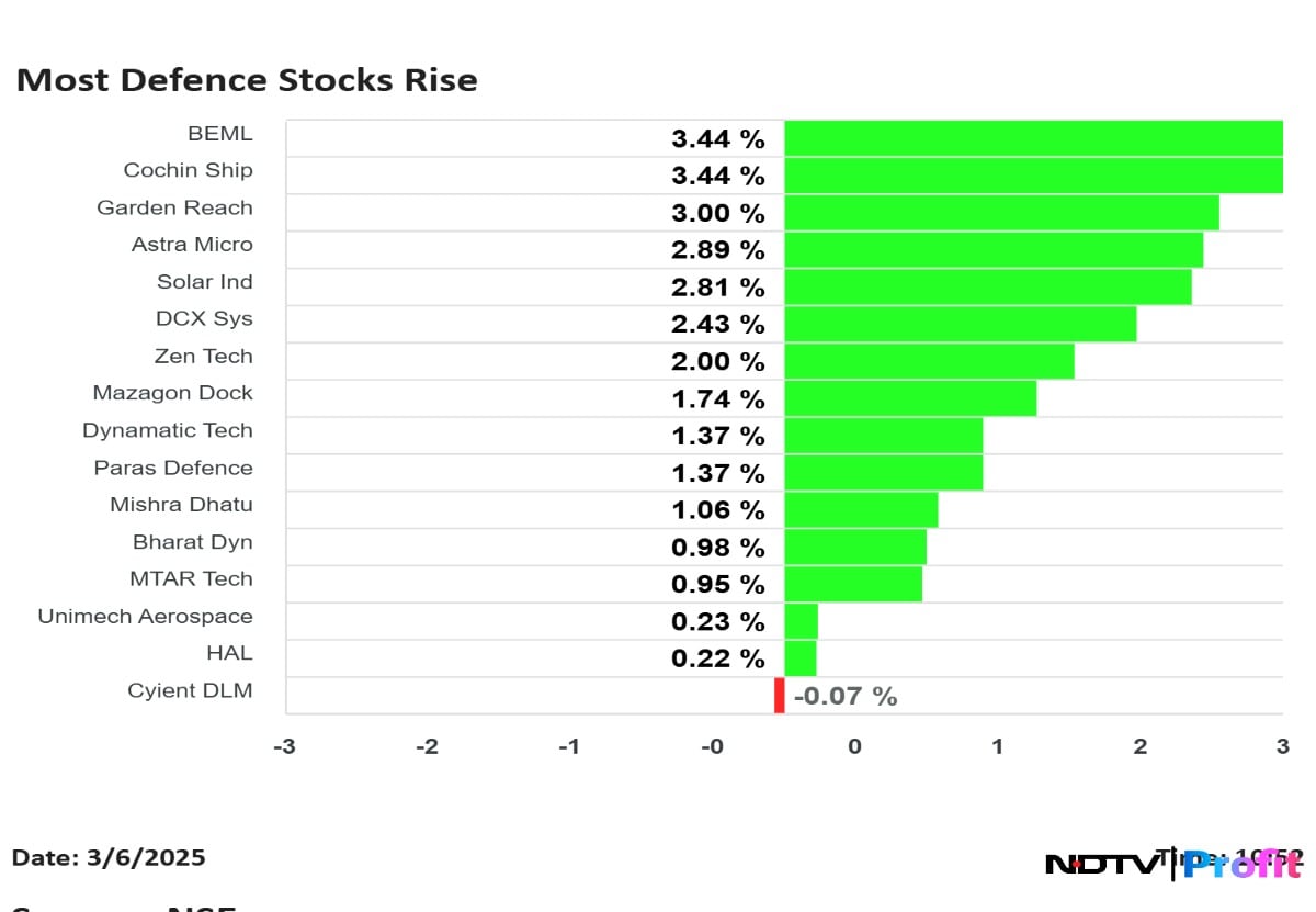 Stock Market Live: Most Defence Stocks Advance; Nifty Defence Best Performing Sector